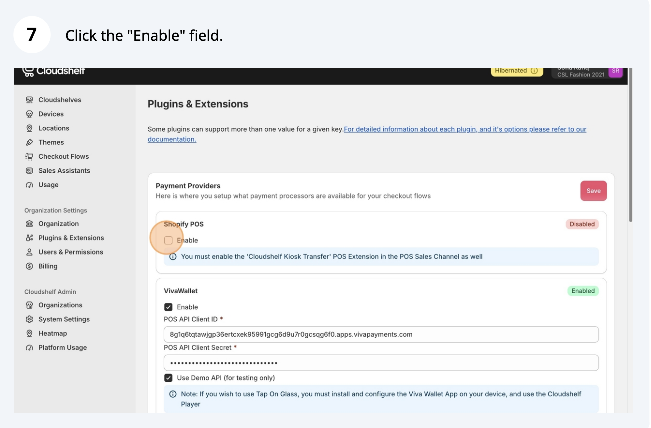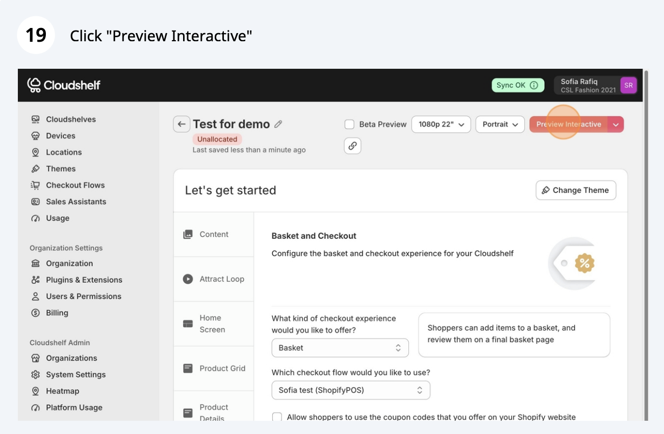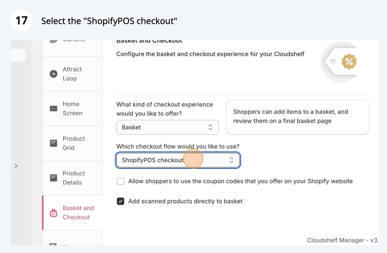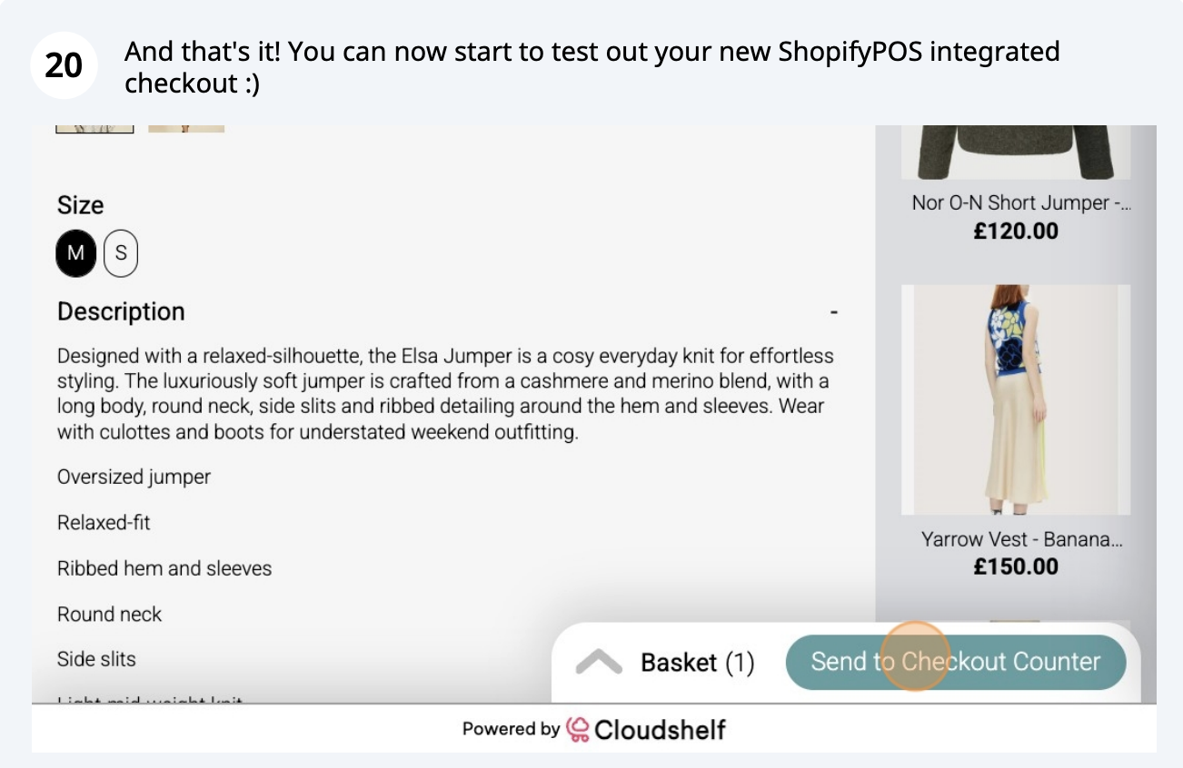 Below you will find some quick steps on how to configure ShopifyPOS from within the Cloudshelf app, so that customers can send their baskets to your in-store ShopifyPOS system.